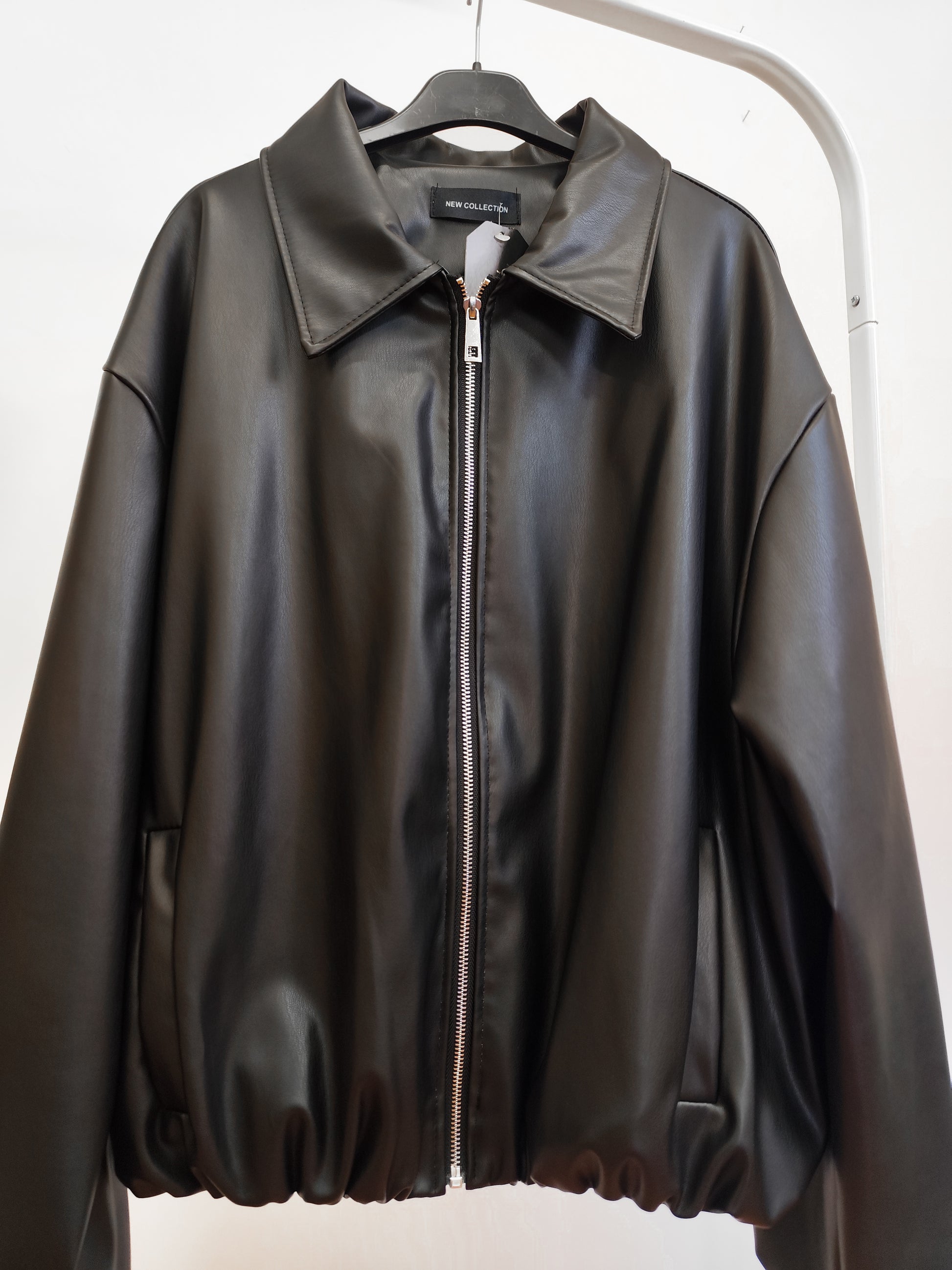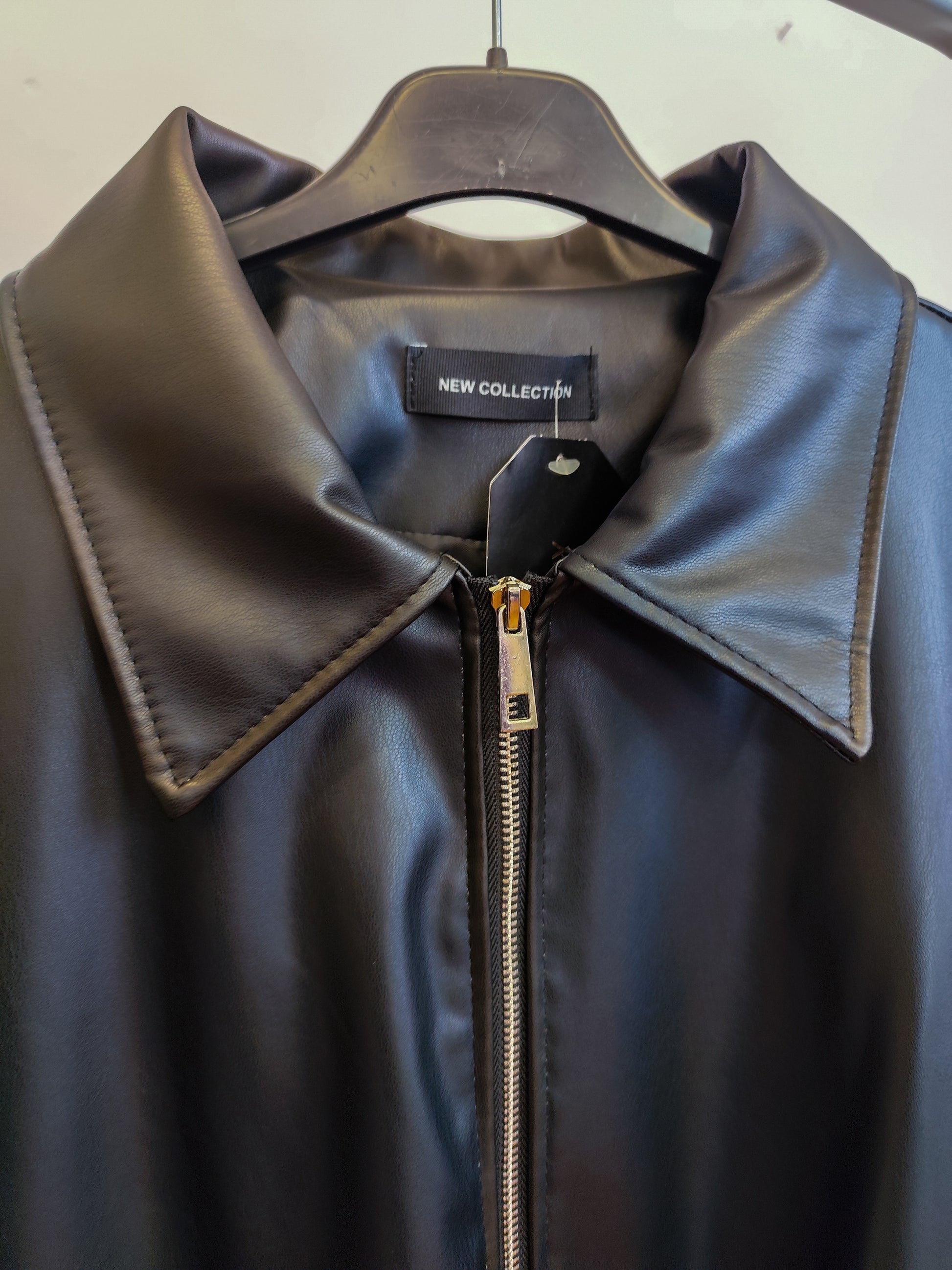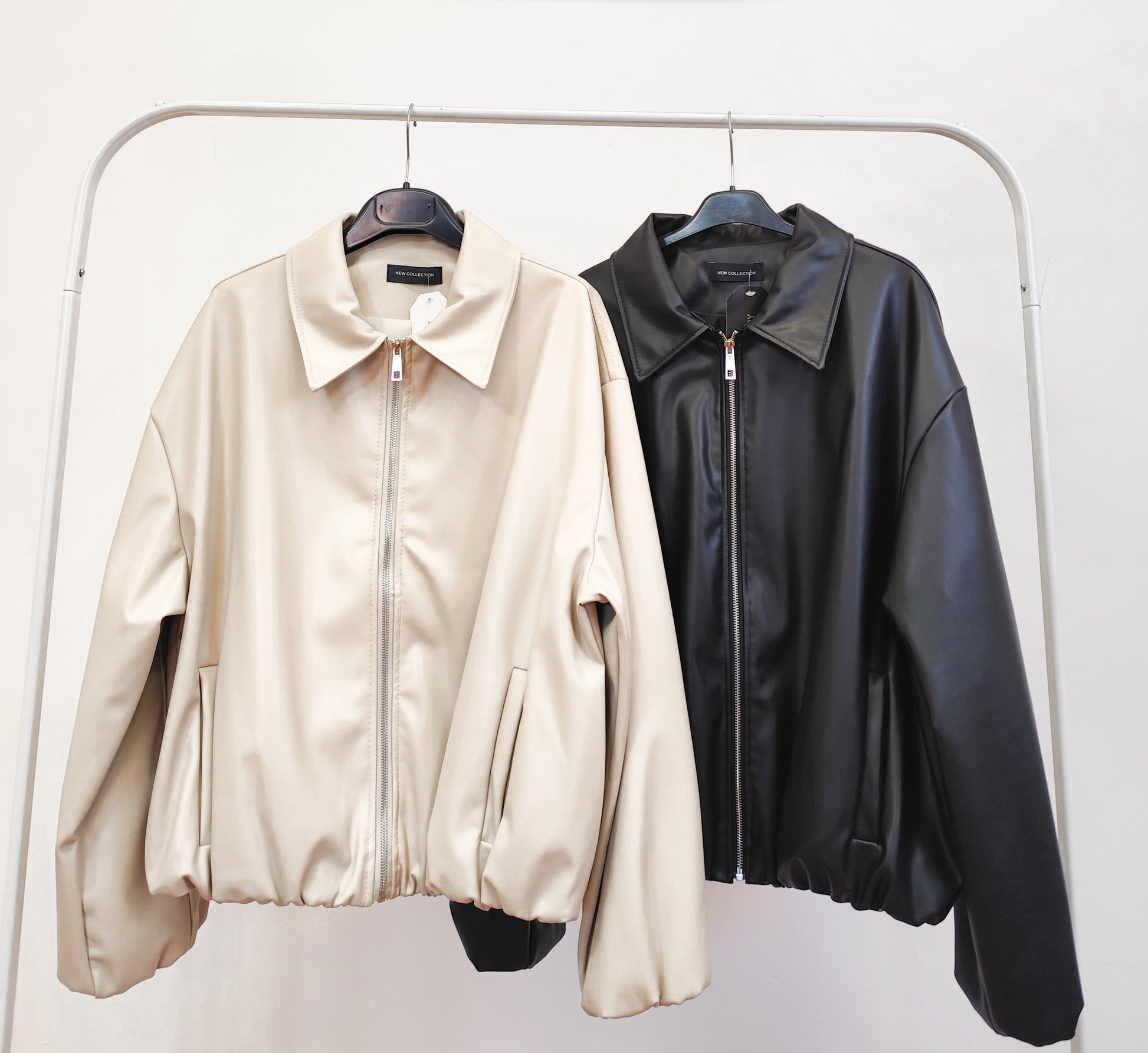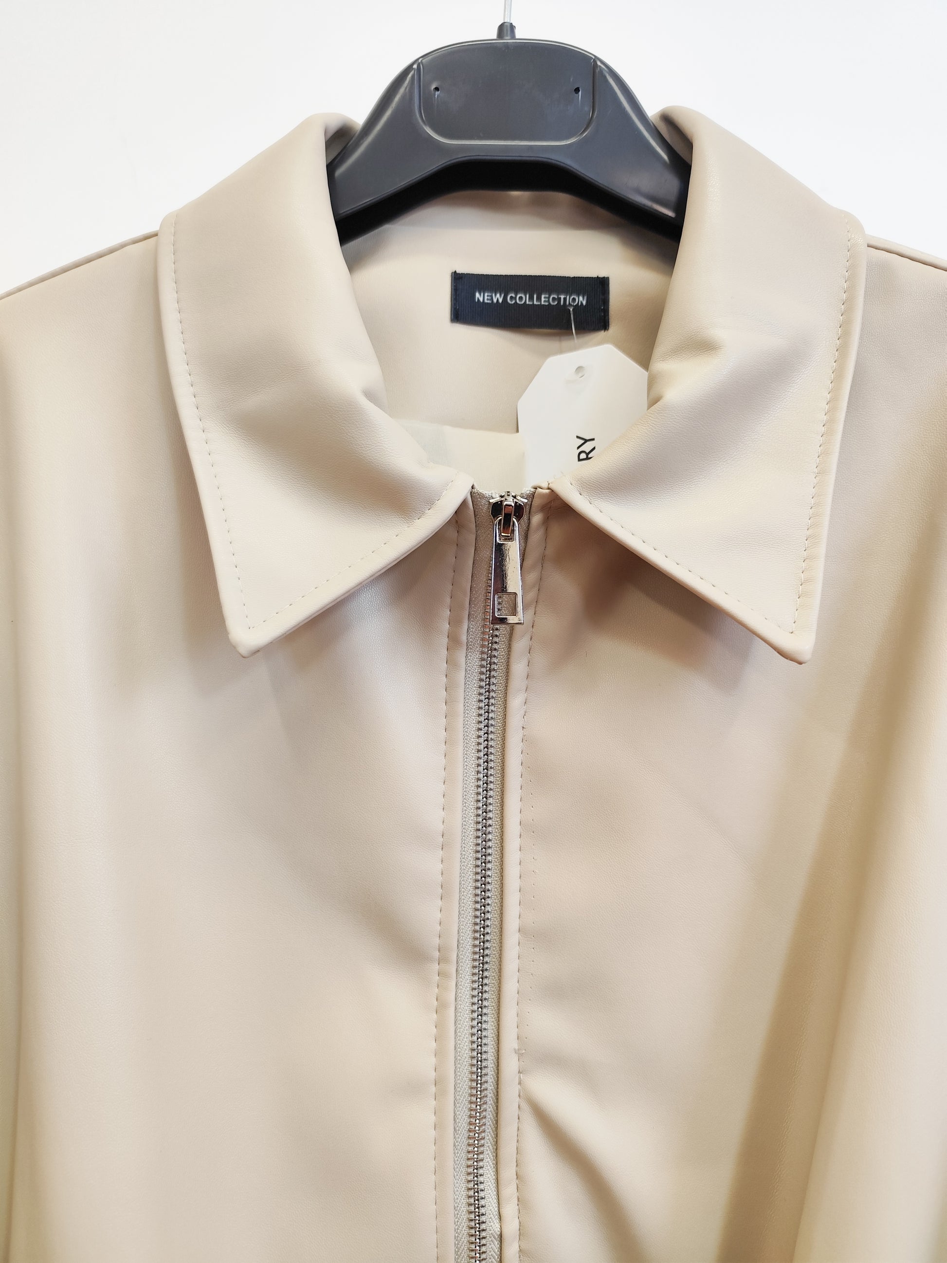 Realizzata in ecopelle di alta qualità, unisce il comfort della vestibilità oversize al fascino urbano del design minimal. Disponibile in due varianti – nero classico e burro – è la giacca perfetta per ogni stagione.