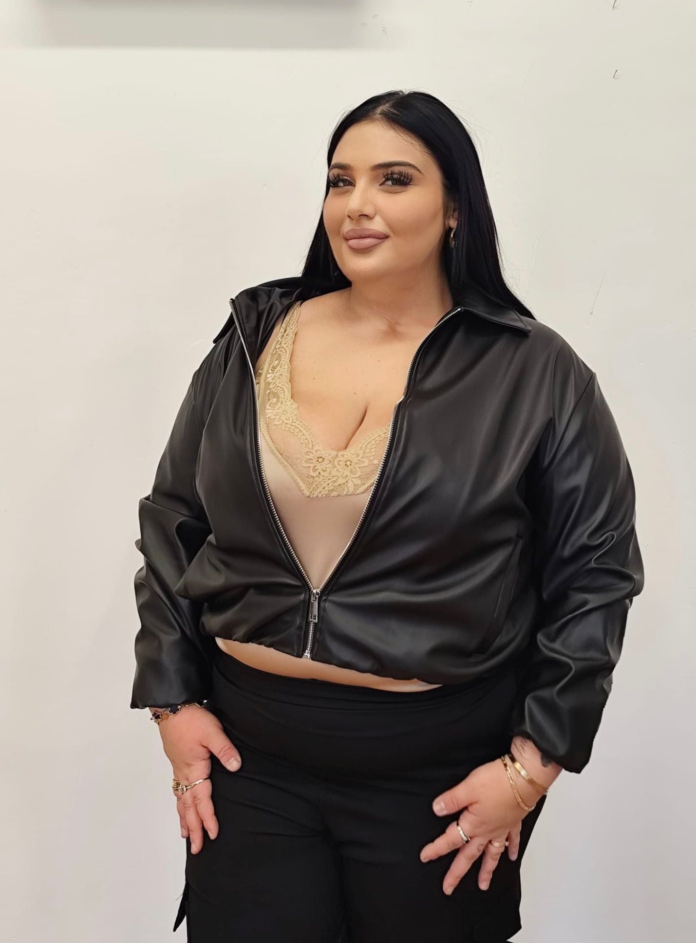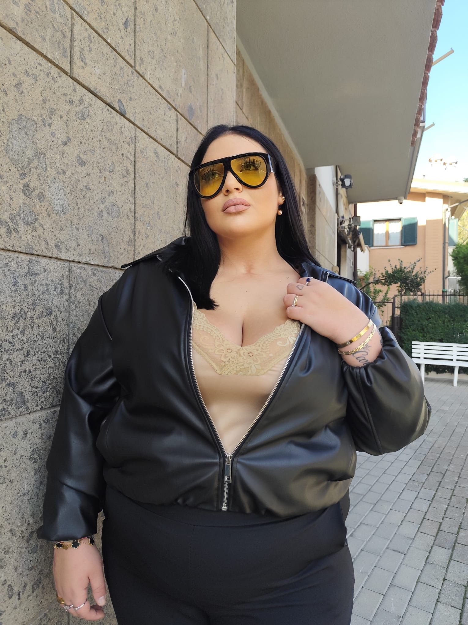 Il Bomberino in ecopelle Perla è la nuova icona della collezione curvy: grintosa, morbida e piena di carattere.