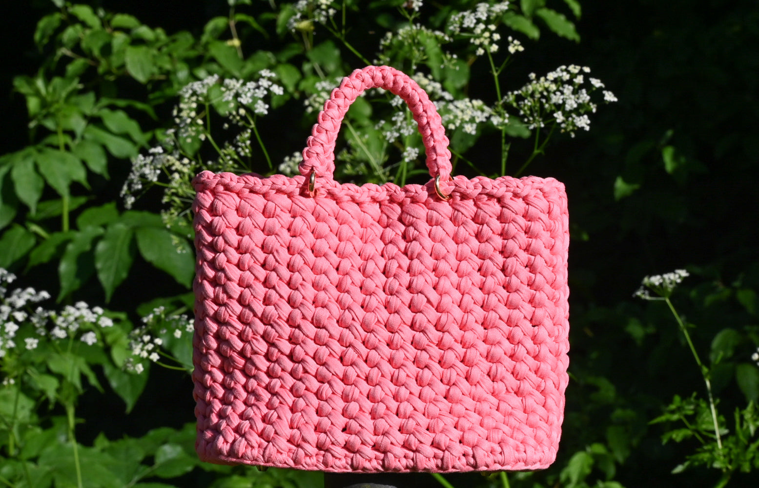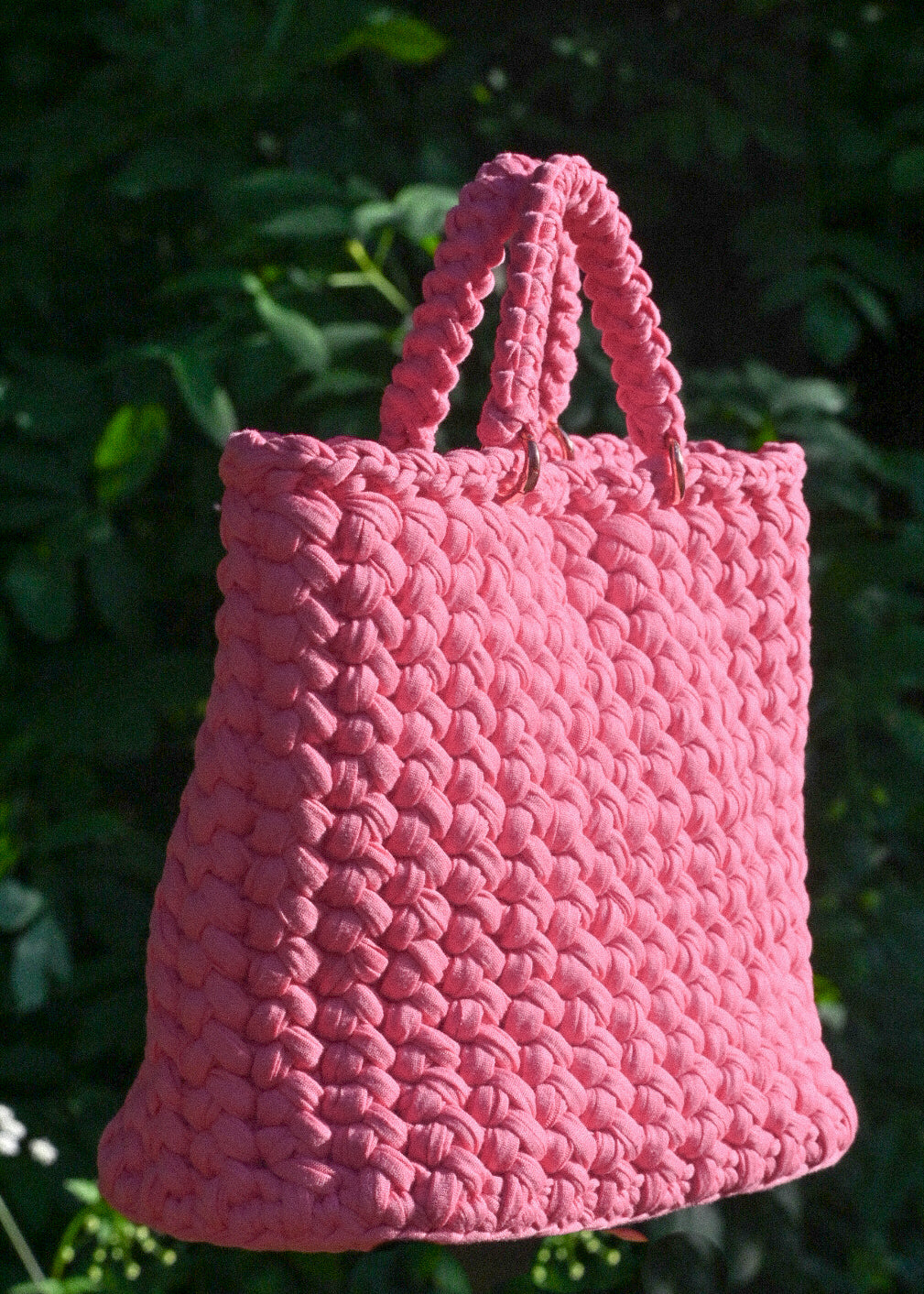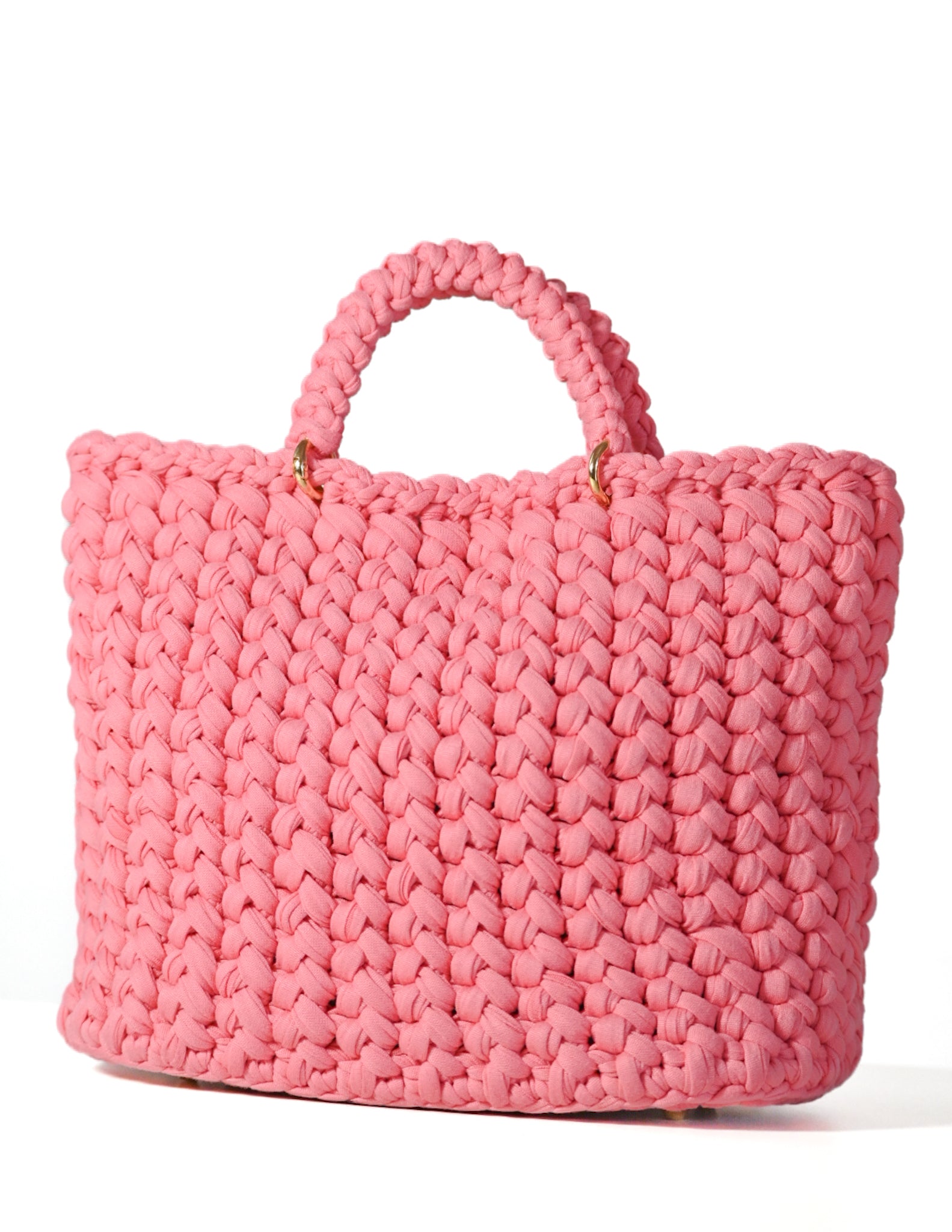 Realizzata con filato spesso e intrecciata interamente a mano, è pensata per chi ama distinguersi con discrezione. I suoi manici in tessuto, morbidi e robusti, la rendono comoda da portare a mano in ogni occasione.