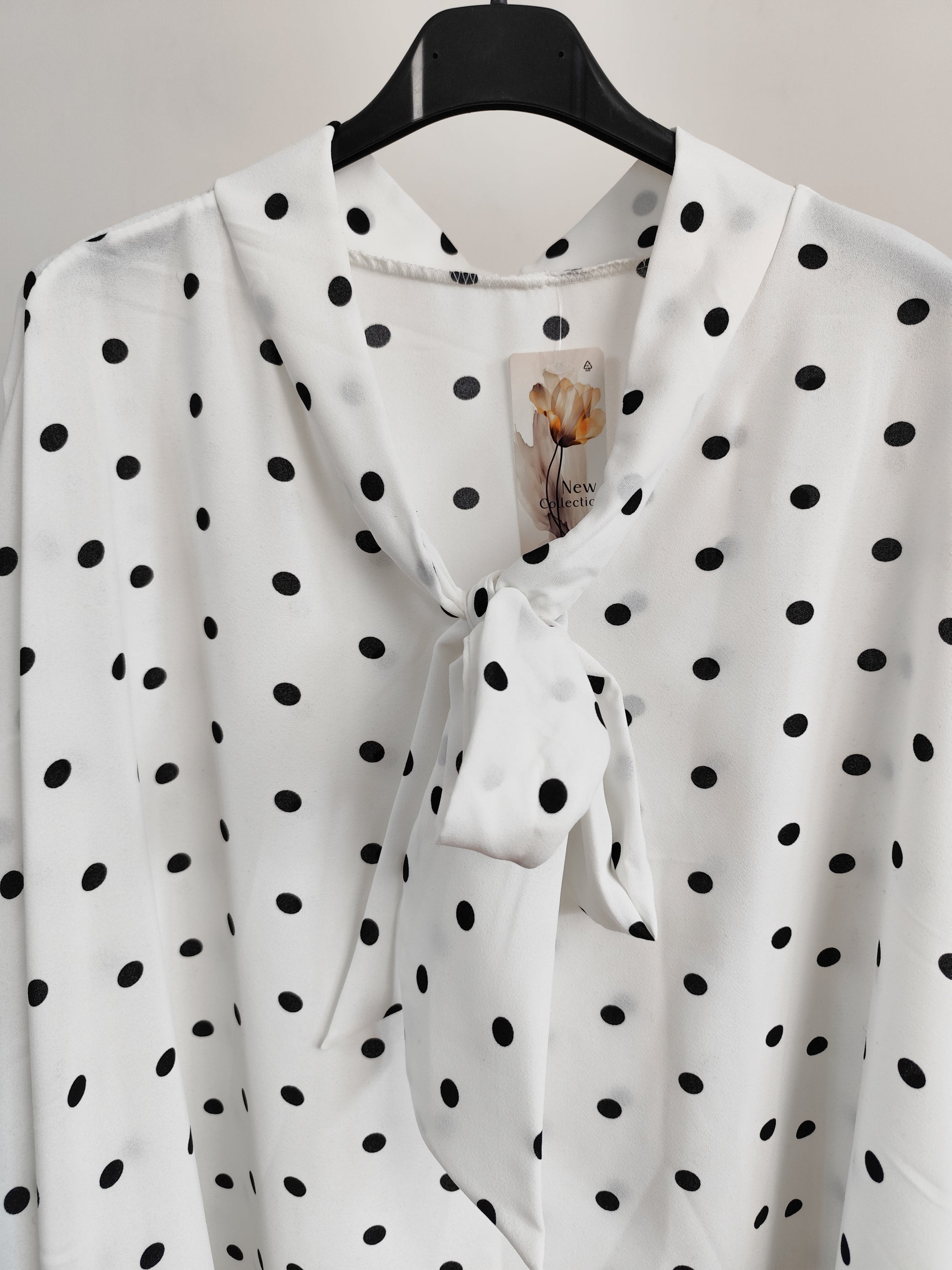 Maxi blusa taglio mantellina a pois, sofisticata e scenografica.
