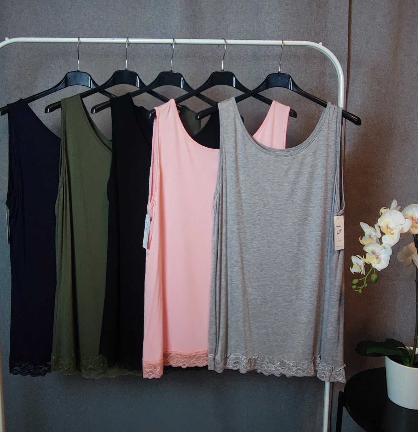 Canotta spalla larga elasticizzata con profilo in pizzo
