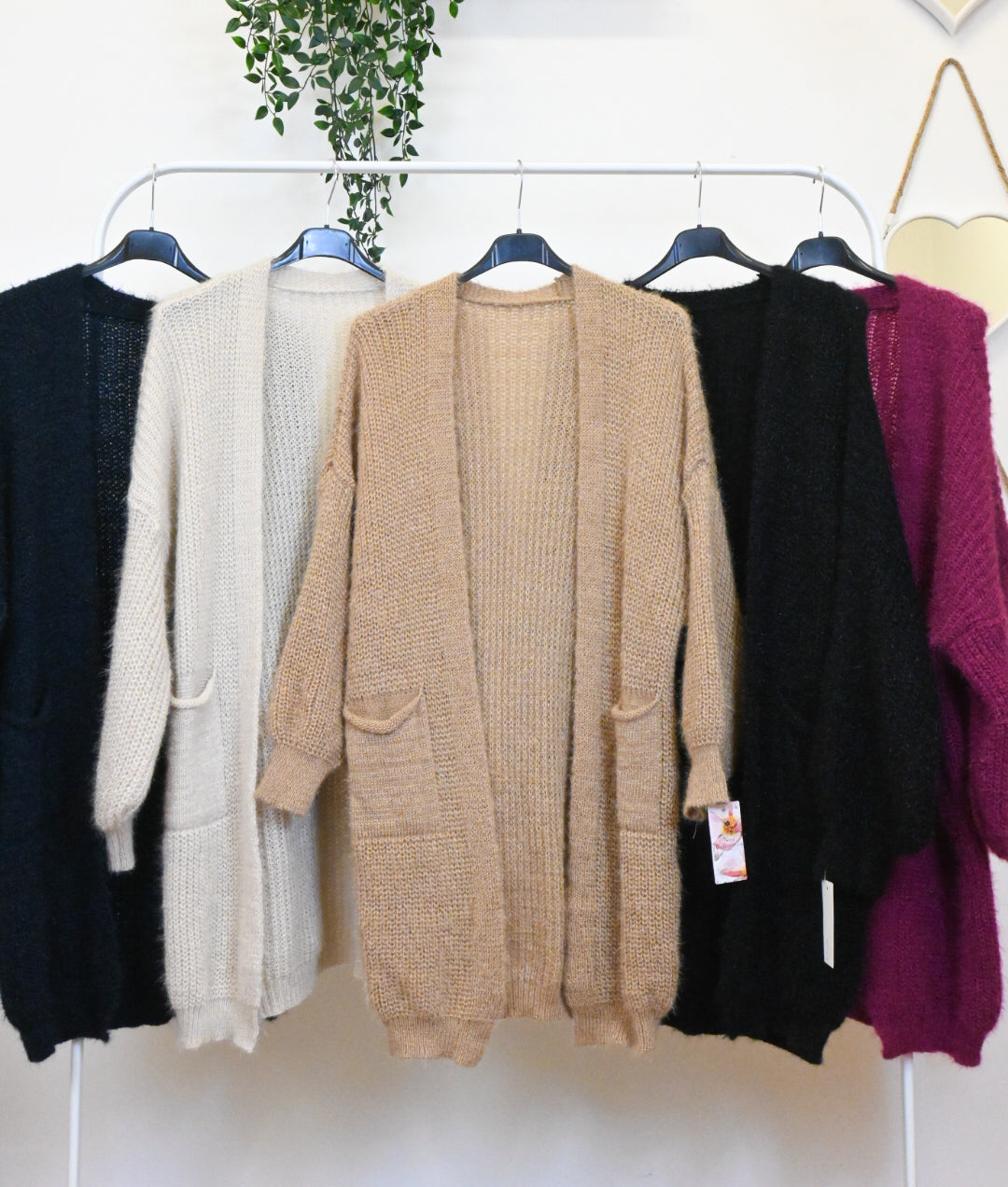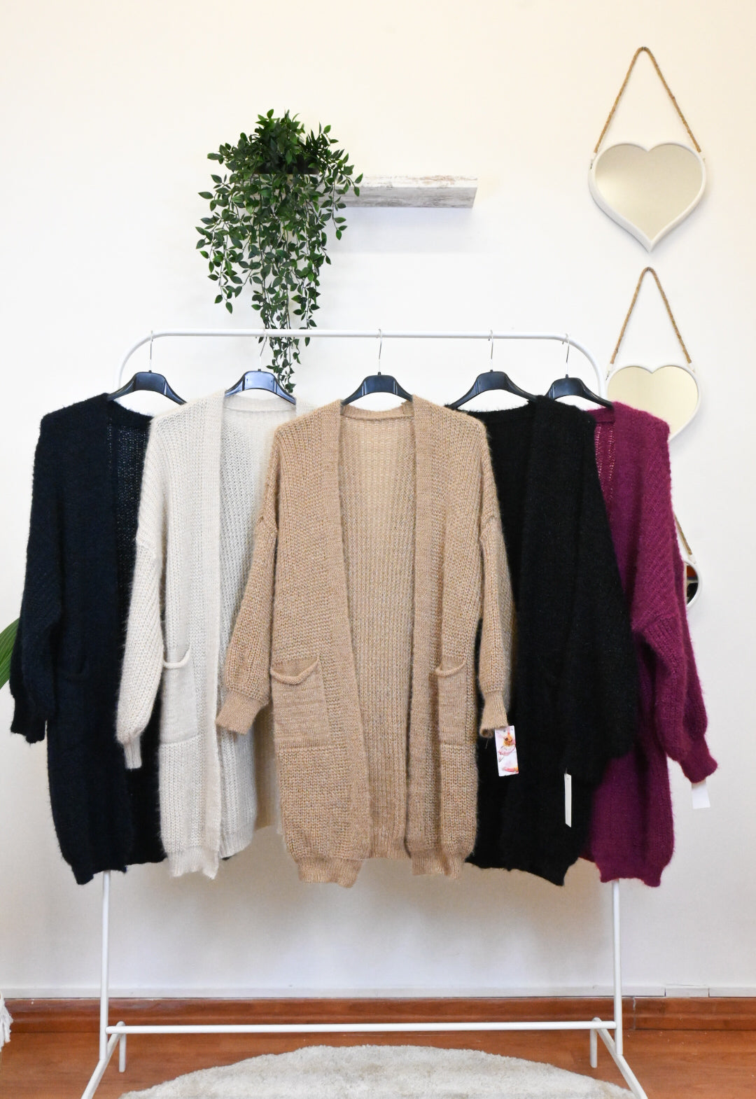 Questo cardigan aperto, con tasche pratiche e un morbido effetto peloso, è il capo che non può mancare nel tuo guardaroba. Il suo tessuto scintillante cattura la luce, aggiungendo un tocco di brillantezza al tuo look. Perfetto per completare i tuoi outfit casual o dare un tocco glamour a quelli più eleganti, è la scelta ideale per sentirti avvolta in un caldo abbraccio di stile, senza rinunciare a un pizzico di luminosità."