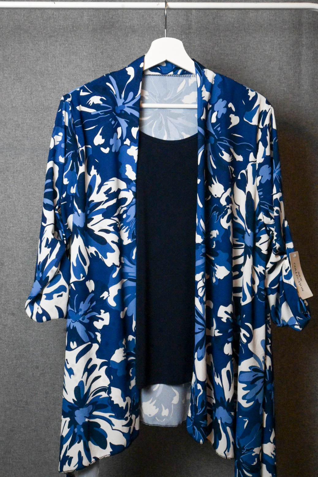 Casacca con canottierina sotto giacca cucita insieme. Manica arricciata a tre quarti