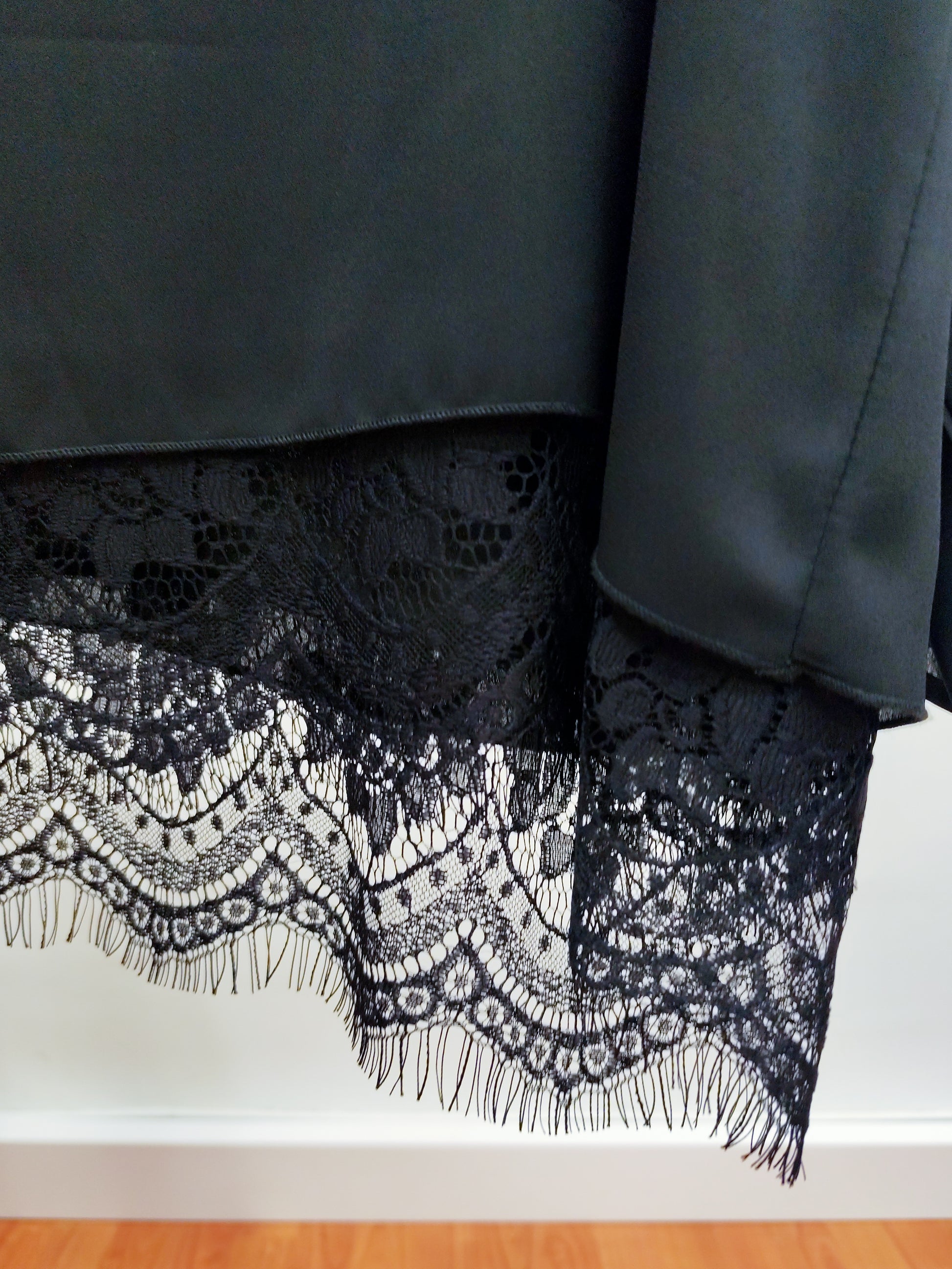 Il dettaglio in pizzo sul fondo dà subito quel tocco elegante e femminile, ideale sia per un’occasione speciale che per rendere chic anche un look semplice.