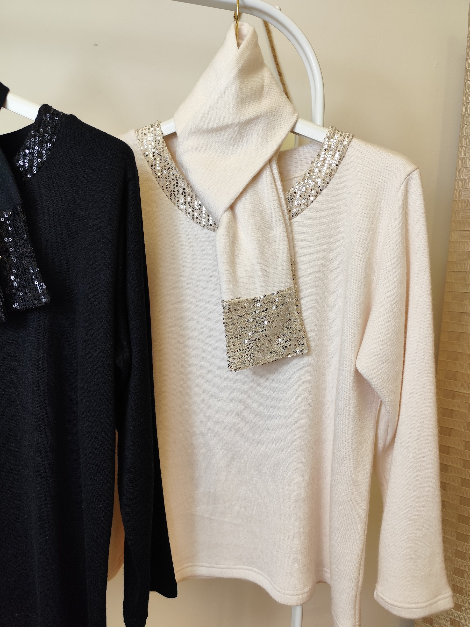 Scopri il nostro esclusivo cord set curvy, perfetto per aggiungere un tocco di stile ai tuoi outfit quotidiani. Disponibile in tre tonalità - grigio, nero e panna - questo completo è impreziosito da un elegante dettaglio di paillettes che illumina lo scollo, ideale per brillare con classe. Il tessuto morbido e caldo è pensato per garantire il massimo comfort senza rinunciare alla raffinatezza. Perfetto per un look casual-chic o per le occasioni speciali. La scelta ideale per chi ama sentirsi bella e a proprio agio! 🌟
