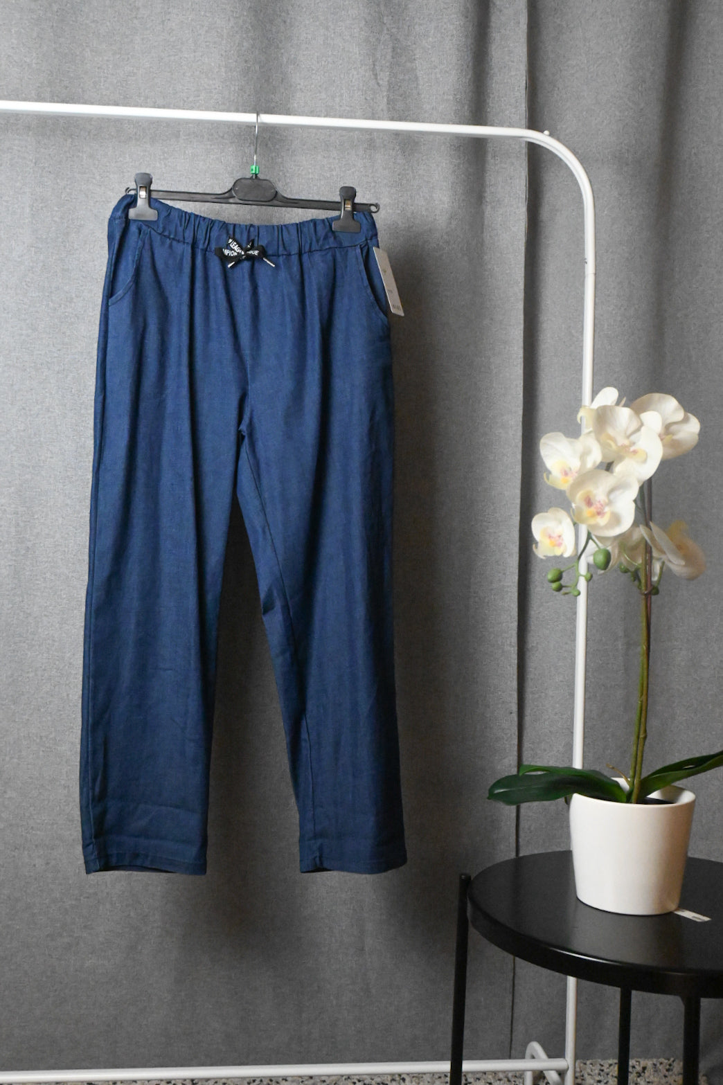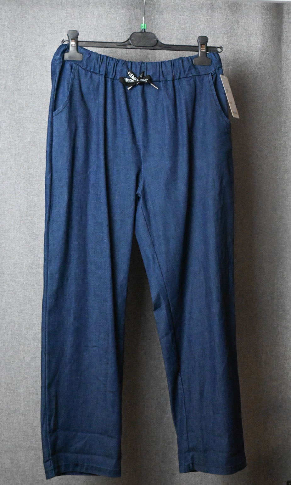 Jeans taglio classico con tasche e laccetto regolabile in vita leggerissimo e fresco