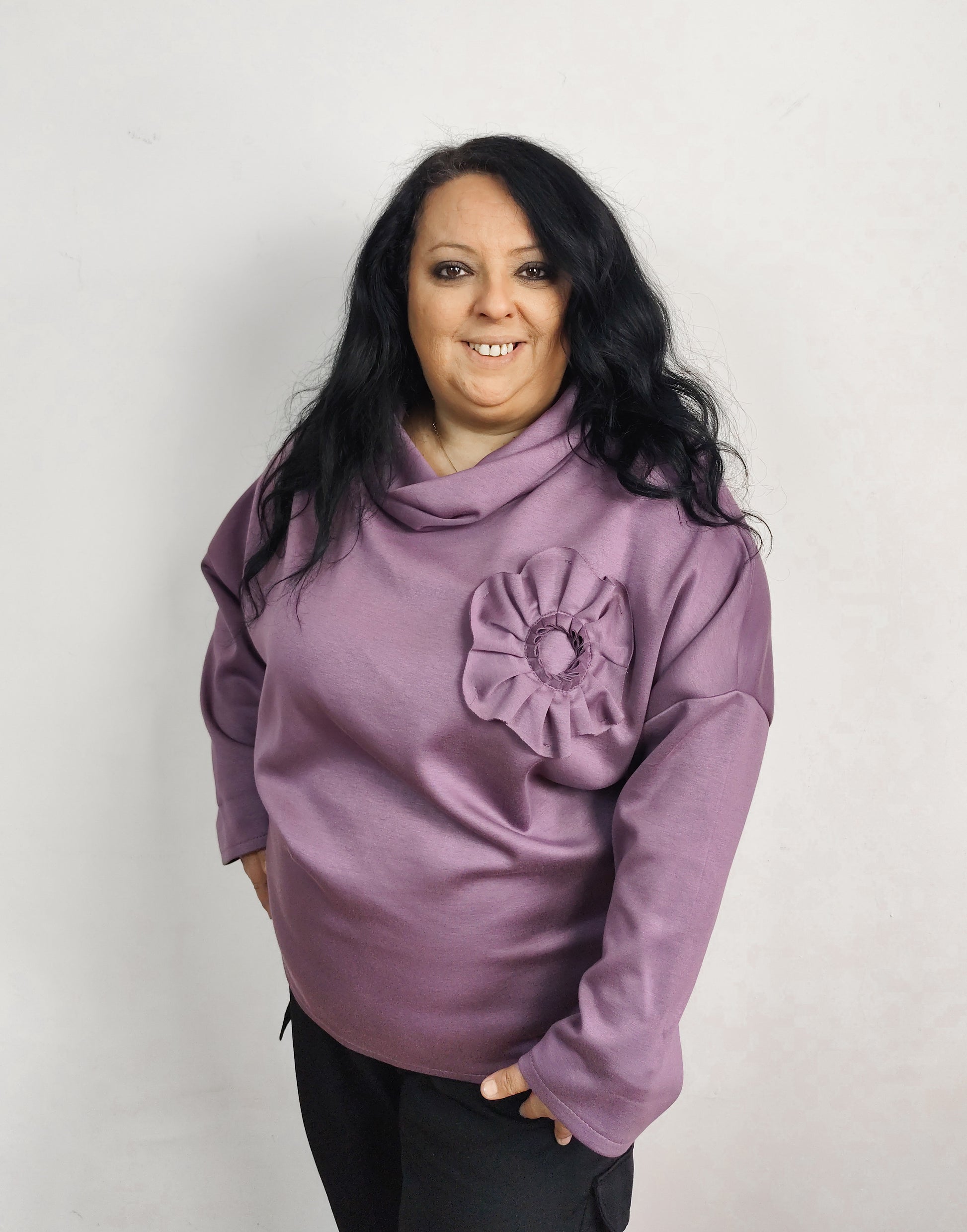 Il dettaglio decorativo sul davanti dona carattere al capo, rendendolo speciale anche nei look più semplici. Il collo morbido avvolge con delicatezza, mentre il tessuto caldo e confortevole la rende ideale per la stagione.
