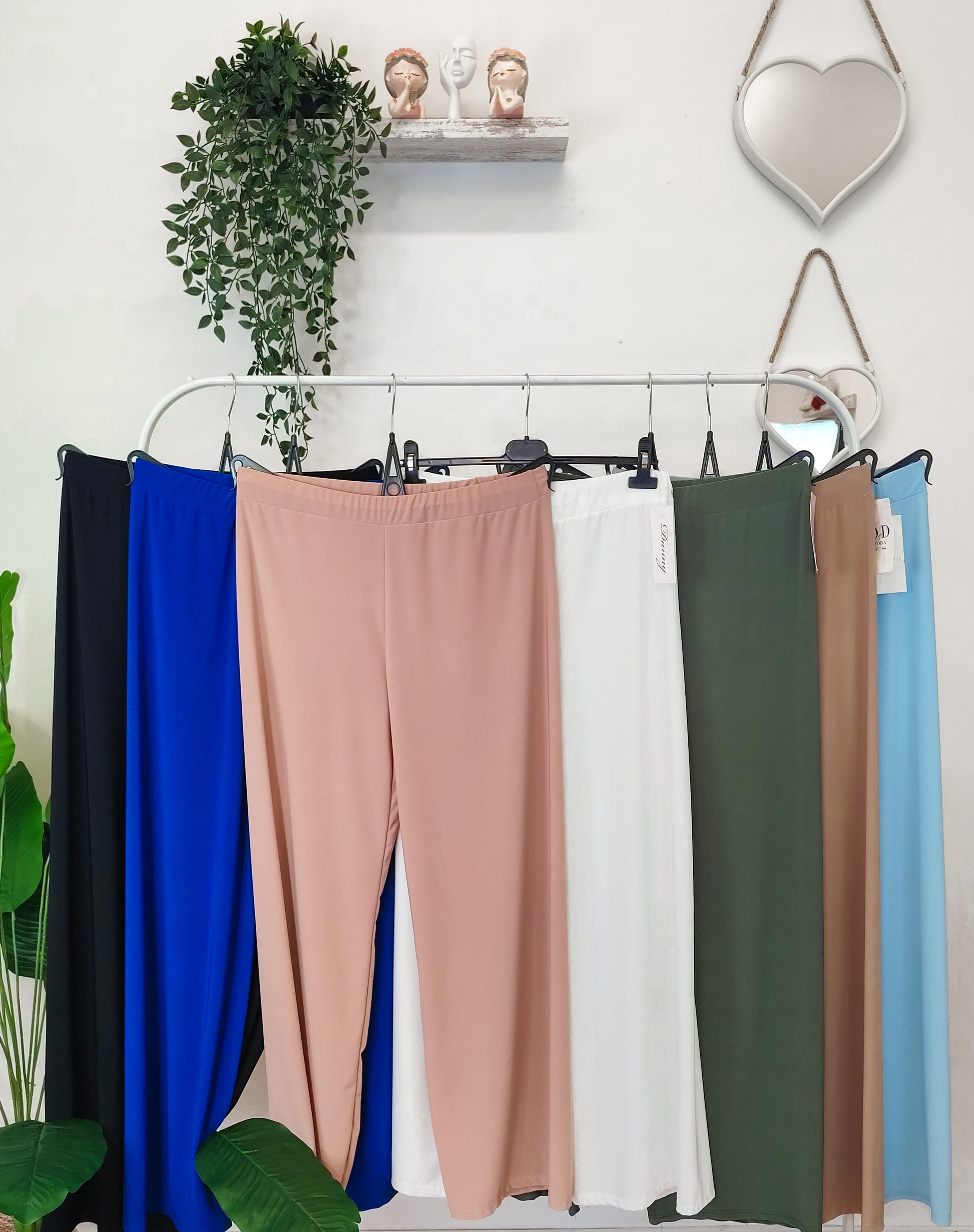 Questi pantaloni in tessuto elasticizzato si adattano dolcemente alle curve senza stringere, regalando libertà di movimento e stile in ogni occasione.