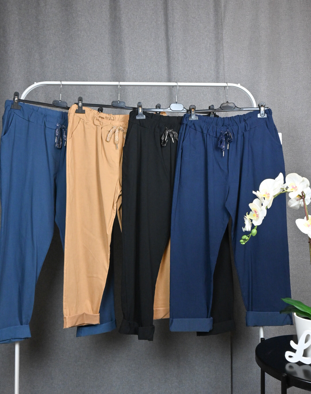 Pantalone elasticizzato con laccetto in vita regolabile e tasche