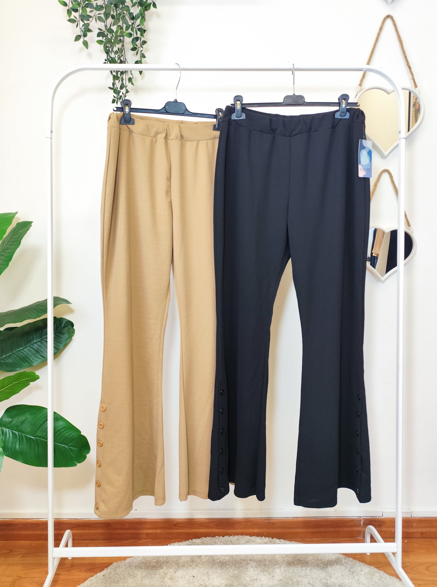 Pantaloni a zampa elasticizzati con bottoncini laterali