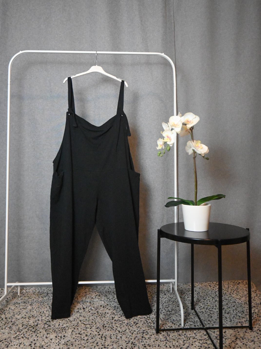 Salopette in cotone con bretelline regolabili , disponibile solo in nero