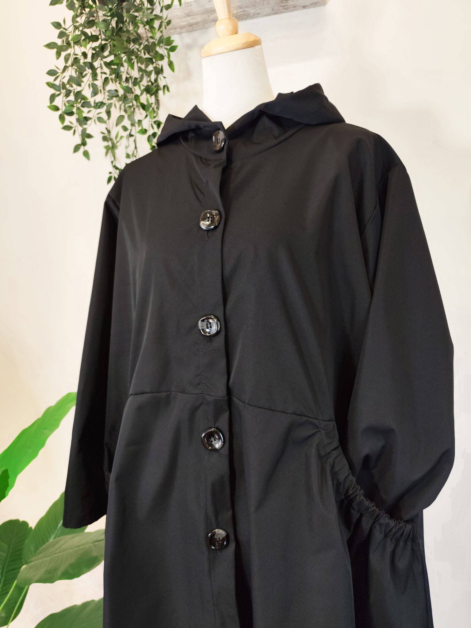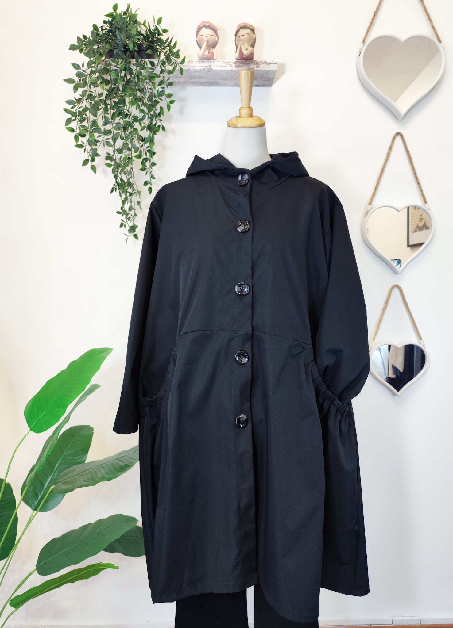 Questo trench è l’alleato perfetto per la mezza stagione! Il suo taglio ampio e confortevole valorizza la silhouette, mentre il tessuto leggero ma strutturato offre protezione senza appesantire.